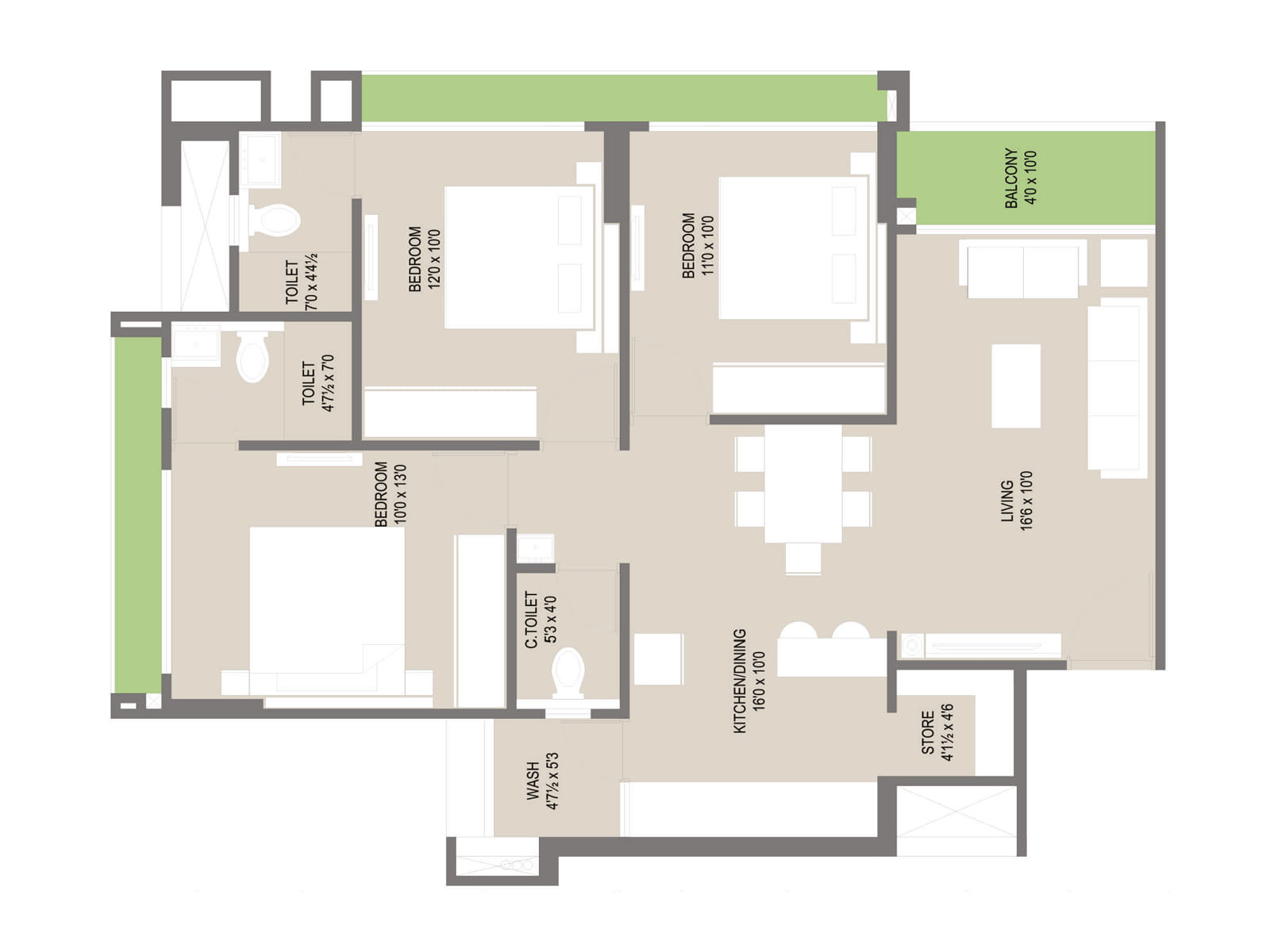 Carpet area : 1760.00 Sf